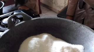 Tahap akhir pemasakan jahe instan adalah pengkristalannya,setelah mendidih tetep terus diaduk aduk sampai mengering dan jadi serbuk jahe instan.